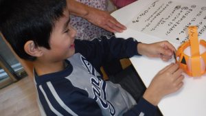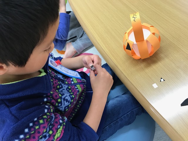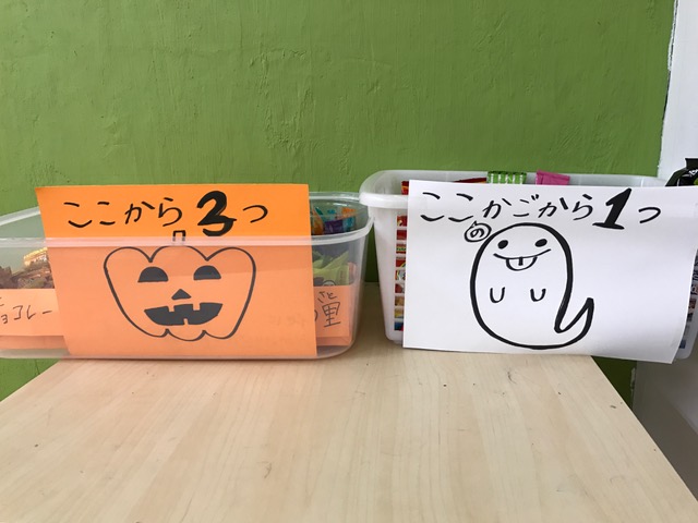 ハロウィン♪ ハロウィンの日 みんなでかぼちゃのランタンを作りました。 ☆作り方☆ かぼちゃに目と鼻と口をつけて・・・ ♪完成しました♪ 好きなお菓子を選んで かぼちゃに入れて HAPPY HALLOWEEN! 2017年11月8日
